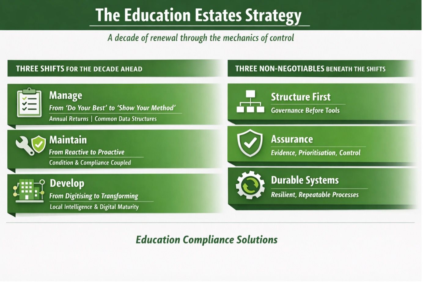 The Education Estate Strategy links condition and compliance as two sides of the same system.